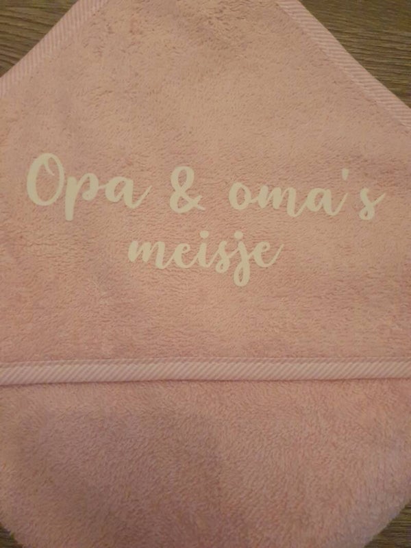 Wil je de badcape cadeau geven? Dat kan zelfs gepersonaliseerd. Op de capuchon drukken we met liefde de naam van het kindje. De beschikbare lettertypes en kleuren vind je op de ontwerp‑pagina.